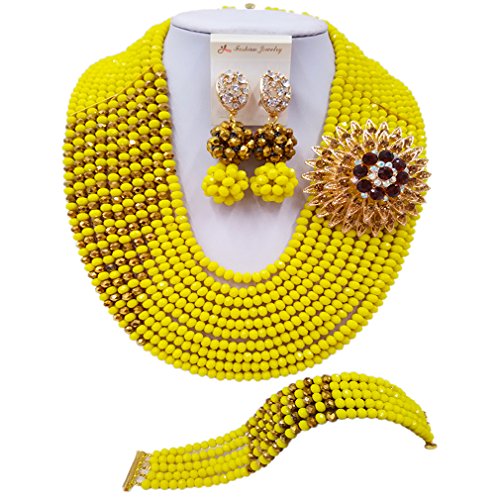-. Title : Nigerian Wedding African Beads Yellow and Gold Plated Crystal Bridal Jewelry Sets