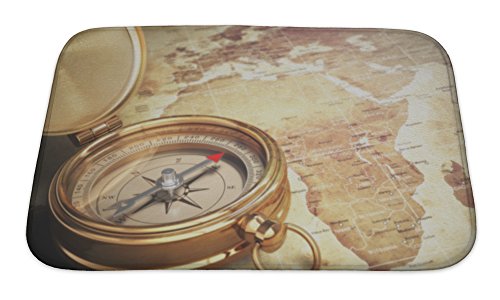 Gear New Vintage Compass on The Old World Map with Doff Effect Travel Concept 3D Bath Rug Mat No Slip Microfiber Memory Foam