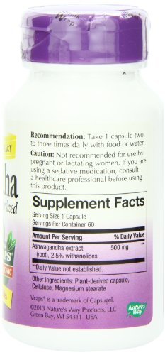 -. Binding : Health and Beauty -. Brand : Nature's Way -. Label : NATURE'S WAY -. Manufacturer : NATURE'S WAY -. PackageQuantity : 1 -. ProductGroup : Health and Beauty -. ProductTypeName : HEALTH_PERSONAL_CARE -. Publisher : NATURE'S WAY -. Studio : NATURE'S WAY -. Title : Ashwagandha