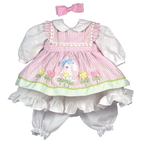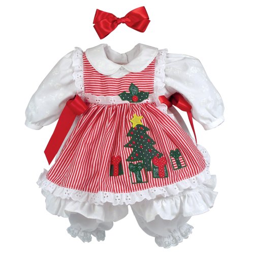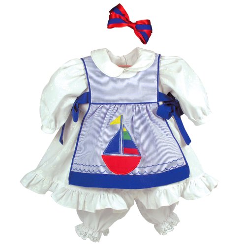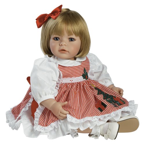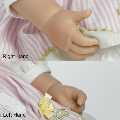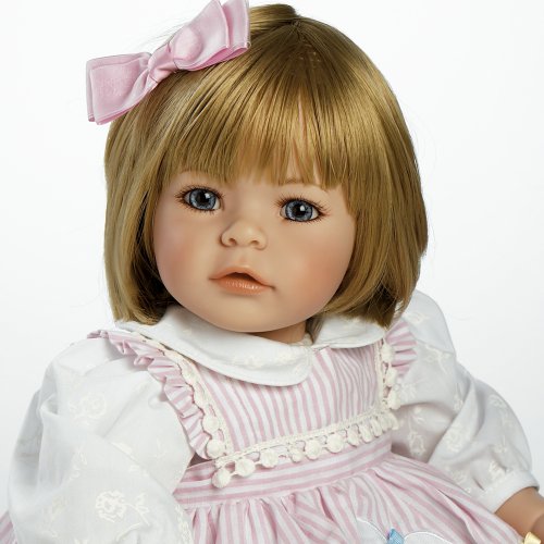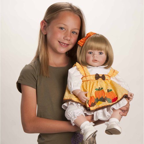 - Feature : One doll with four interchangeable outfits made to match each season of year - winter, spring, summer and fall / Beautiful hand set blue eyes, hand painted details and hand applied eyelashes / Gorgeous sandy blonde hair with a big pink bow accent / Baby powder scented high quality vinyl toddler doll for hours of playtime fun / 20" from head to toe with a weighted body to feel like real baby complete with diaper