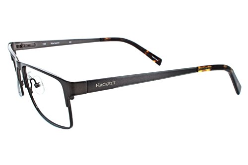 Product Description The HEK1114 of the Hackett London Large Collection is a pair of rectangular metal frames. It features a double laminate metal front and temples with acetate temple tips. The Hackett name logo is shown subtly on the temples. Large fit Adjustable nose pads Spring hinges Branded protective case and cleaning cloth included Hackett London optical is eyewear without ego. Contemporary silhouettes carved from only the best materials, these Hackett London frames are the epitome of discrete confidence. 0