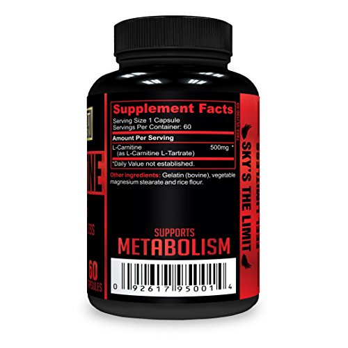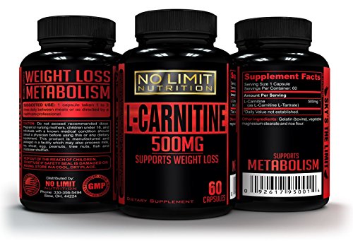 No Limit Nutrition L-Carnitine 500 MG Weight Loss Supplement 60 Capsules - Metabolism Booster - Healthy Heart - Immune System Support