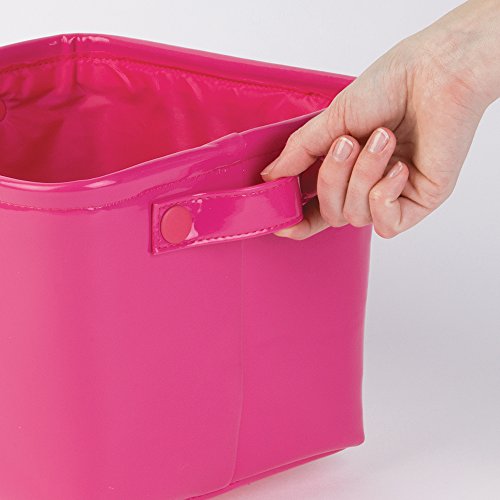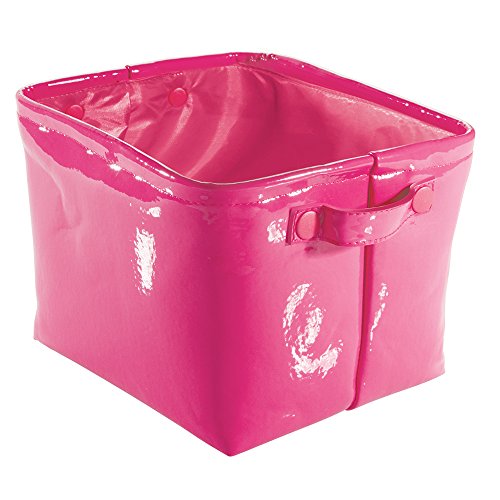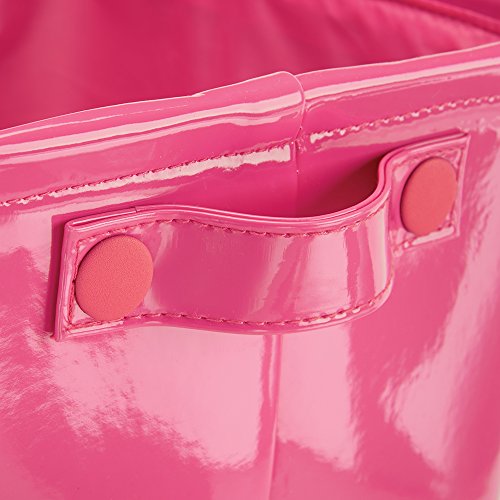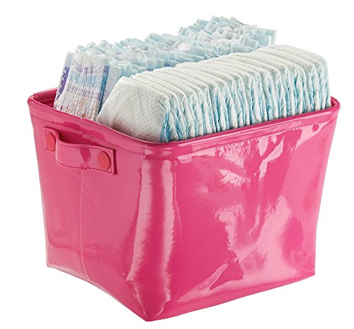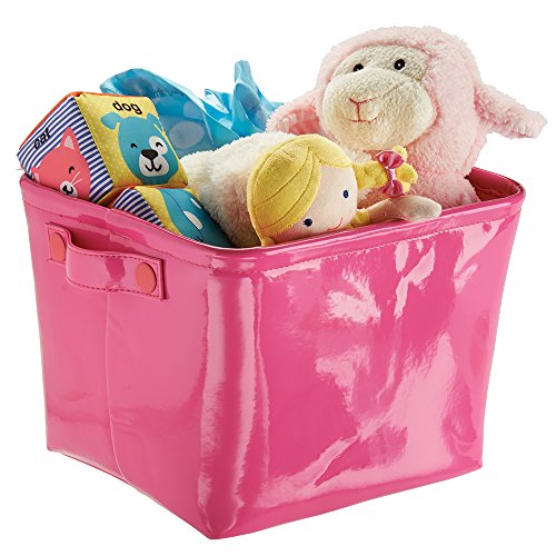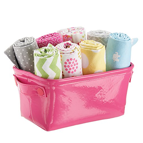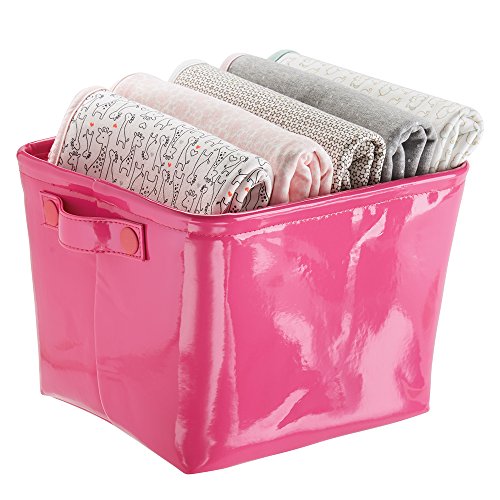 mDesign Baby Nursery Organizer Storage Bin for Diapers, Stuffed Animals, Towels, Blankets - Vegan Patent Leather, Medium, Pink