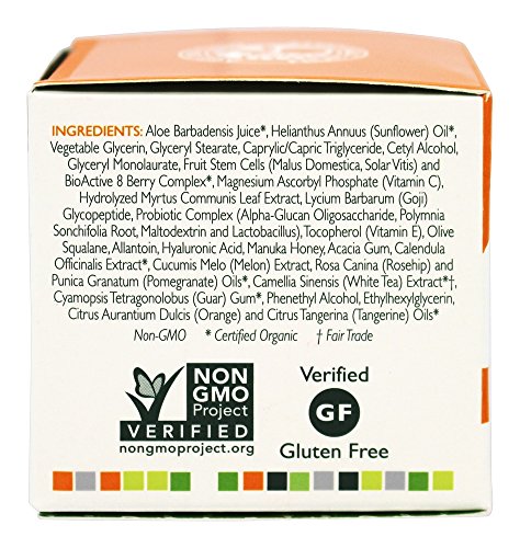 Andalou Naturals Advanced Fruit Stem Cell Science renews skin at the cellular level, blending nature and knowledge for visible Brightening results.Renew Skin VitalityRepair Deep Dermal DamageRegenerate Healthy CellsBioActive 8 Berry Complex provides a potent portfolio of super antioxidants to combat environmental stressors, support cell turnover, increase collagen and elastin, and strengthen dermal immunity. Probiotic microflora boosts immunity, as Advanced Fruit Stem Cells, Vitamin C and potent polypeptides effectively slow cellular damage, stimulating circulation and healthy cell renewal, improving, clarity, tone and texture for a fresh, radiant complexion. RESULTS: Brightening