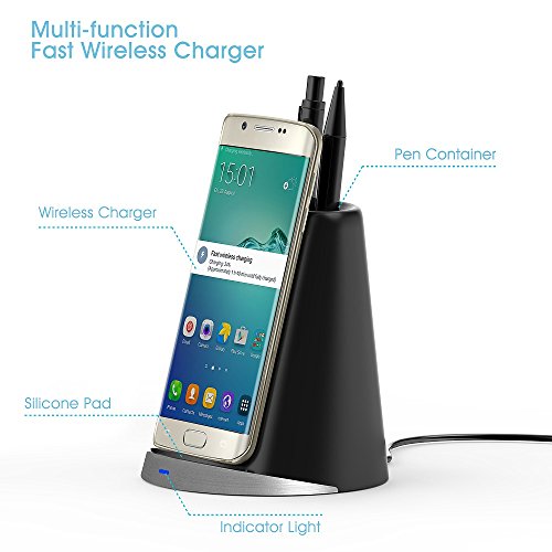 Fast Wireless Charger, YOUSTOO FC21 2-Coil Qi Fast Wireless Charging Mount Quick Wireless Charger Charging Station Pen/Pencil Container Holder