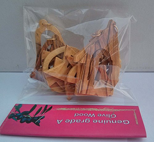 Certificated Assorted Bethlehem Olive Wood Christmas Tree Ornaments by Bethlehem Gifts TM (Set of 12)