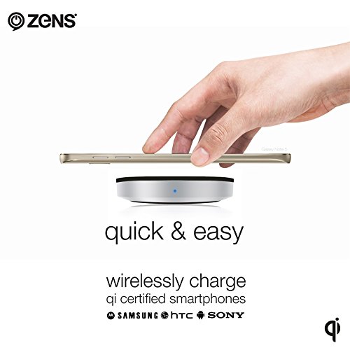 Round Wireless Phone Charger Pad by ZENS – Qi Charging – Single Coil – for Samsung Galaxy S6 S7, Note 5, Nexus 4 5 6, Xperia, Lumia, Other Qi Enabled Smartphones