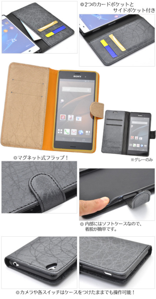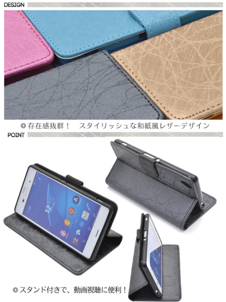 Xperia Z3用スタンドケースポーチ。