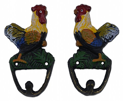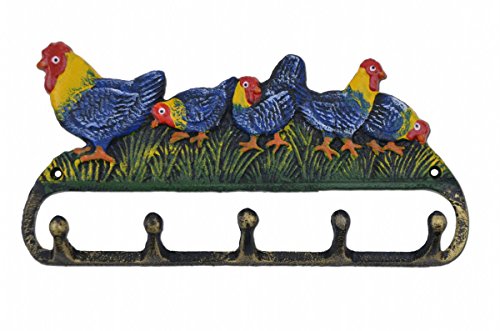 Rooster and Chickens Wall Hook 3 Piece Set Colorful Painted Cast Iron