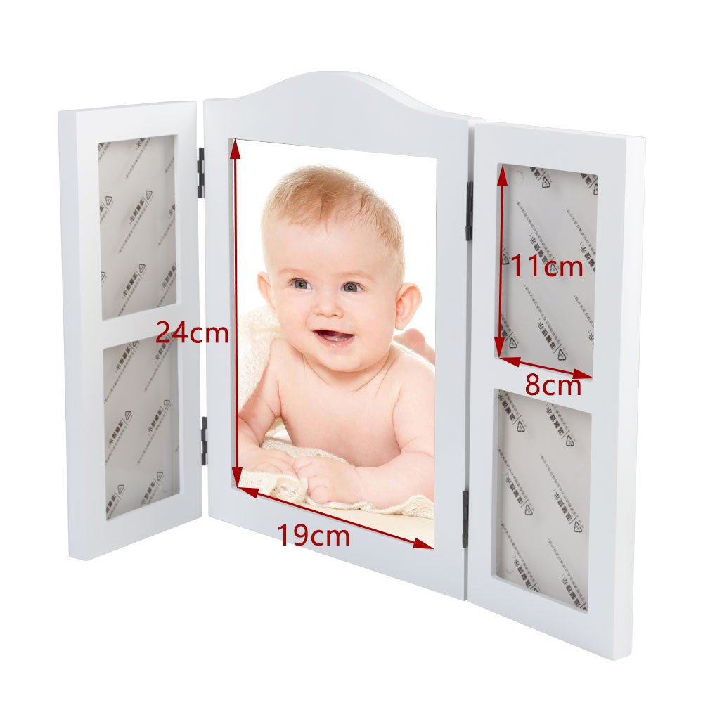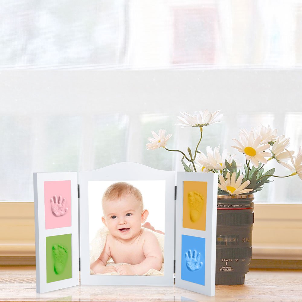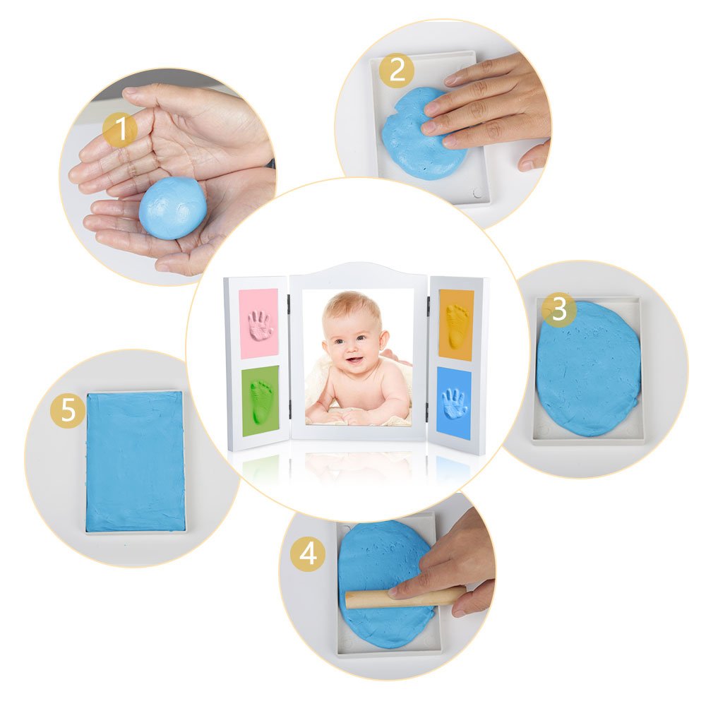 This is a clay frame, a baby's small footprint, a frame that can store bills.