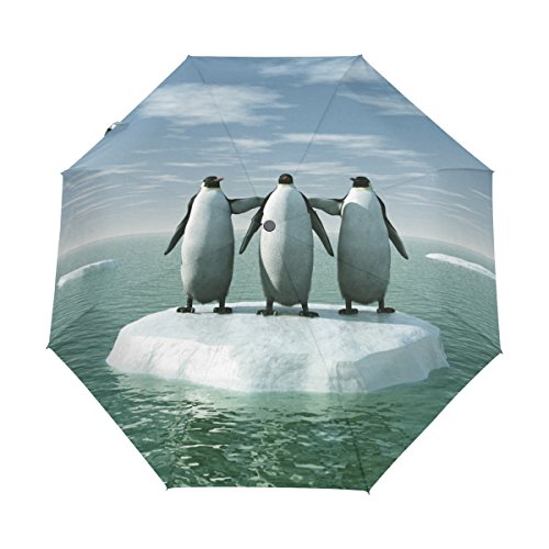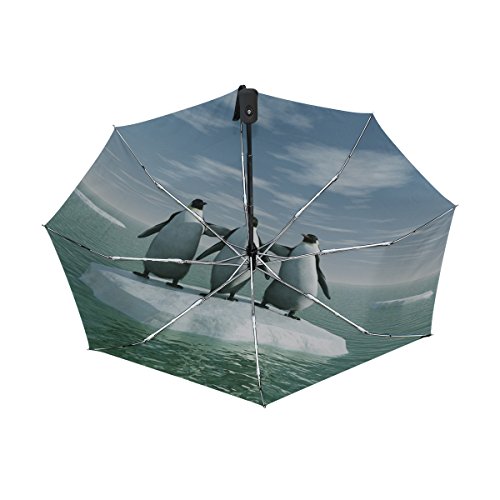 materials: made of 100% polyester pongee waterproof fabric. Weight: it is lightweight, 393g. Single-sided printing. Style: automatic open and close umbrella; foldable mini travel umbrella. Can be used on rainy and snowy day. Suitable for boys, girls, women and man. Feature: Light weight, small, portable. This Three Penguins On An Ice Floe Ocean folding umbrella is also a perfect Christmas gift, new year gift, and back to school gift. 0