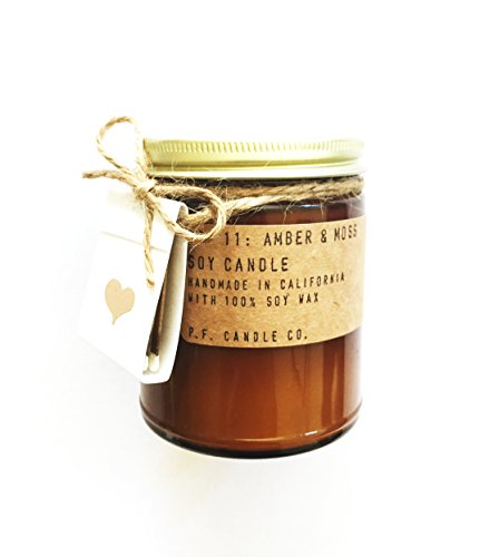 P.F. Candle Co. Scented Soy Candle (Amber & Moss) and Matchbook