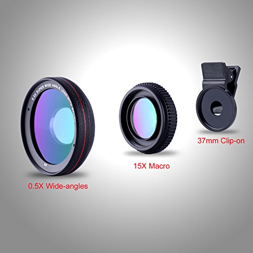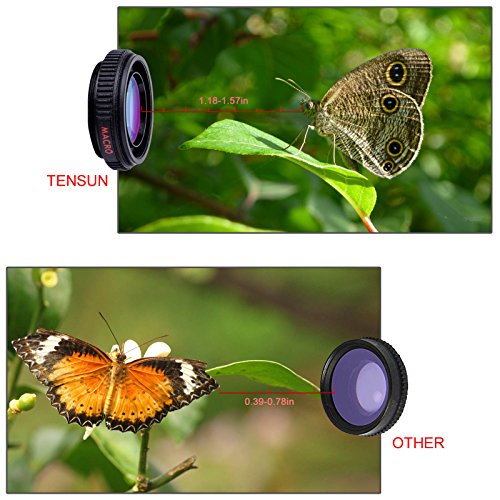 Studio : Tensun Publisher : Tensun Binding : Electronics Product Description Tensun Cell Phone Lens Turns your phone into a DSLR using real SLR lens Lens 0.5X Wide Angle Lens allows more of the scene to be included in the photograph, which is useful in architectural, interior and landscape photography. 15X Macro lens helps to take extreme close-up from the subject (perfect for flowers, coins, insects, etc.). Get Creative Take images to the next level with spectacular 160° wide angle perspectives. Snap selfies, portraits, flowers, bugs, food, large group photos, cityscapes, or wildlife. Produce stunning, crystal clear images that let you hold on to the moment forever. 2 in 1 Kit Design Professional HD lens minimizes lens glare, reflection, ghosting and other artifacts for superb clarity. Universal Compatibility Most cell phones whose lens are not bigger than 0.51in (13mm) in diameter and the distance between camera and the edge of the cellphone is no more than 2.5 cm. Simple Just clip on, focus and click for high impact macro or wide angle images and videos. Package Included: 1 x 0.5X HD Wide Angle Lens 1 x 15X Macro Lens (Screwed with the Wide Angle Lens) 1 x Universal 37MM Thread Clip 2 x Lens Cover 1 x Leatherette Pouch NOTE : Wide Angle Lens and Macro lens are screwed together. To use macro lens, you need to separate the two lens by unscrewing.Then, keeping 1-3 inches distance from the object, you will get more crisp clear pictures.And to use wide angle lens, you must leave the two lens screwed 0
