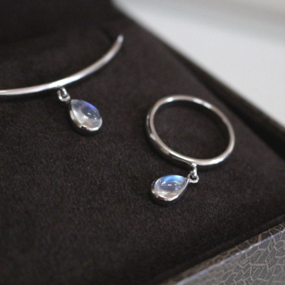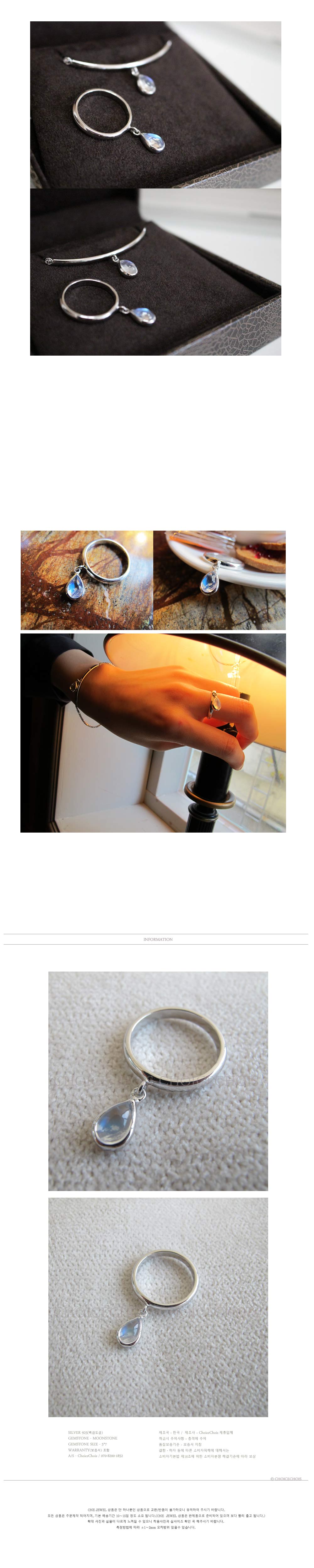 | [CC]물방울 레인보우 문스톤 반지 문스톤(MOONSTONE) 빛깔 만으로 신비함을 품은 보석 문스톤 입니다. 자각몽을 꾸게 해주고 투시력을 키워준다는 뜻이 있습니다. 뜻까지 신비한 보석입니다. 물방울 모양의 문스톤을 심플하게 셋팅 하였습니다. 문스톤의 효과가 너무 좋습니다. 움직일 때 마다 푸른빛을 보실수 있어요. 그래서 달랑이게 셋팅한 이유도 있습니다. 달랑거리는 팔찌와, 반지로 포인트 주기에 너무 좋습니다. 이쁘게 착용하시기 바랍니다. :-) |