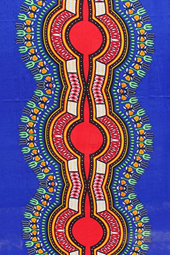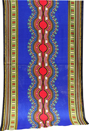 RaanPahMuang Light Viscose Bold Africa Boubou Dashiki Rayon Fabric 42in x 3yd Bolt, Medium Blue