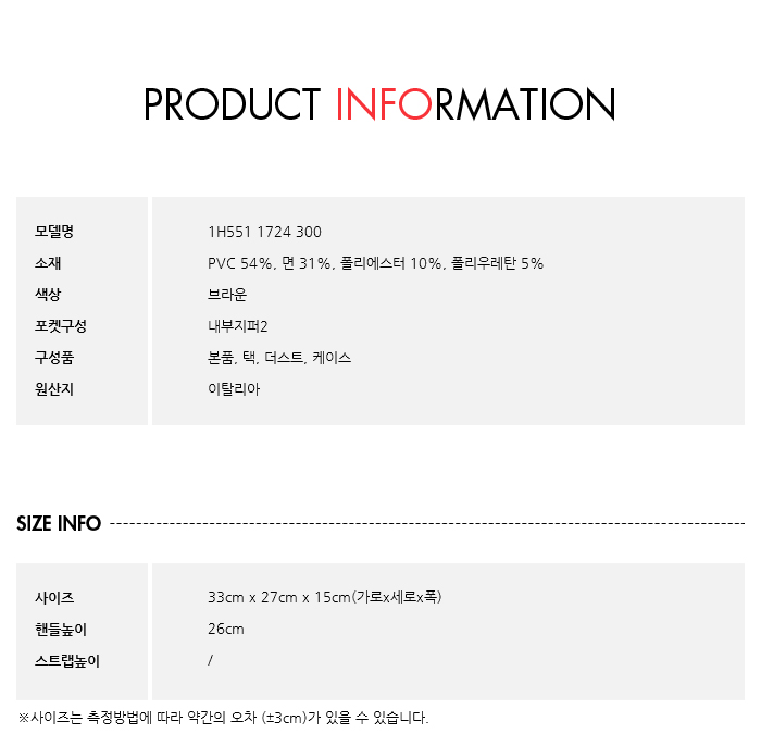 사이즈사이즈 : 33cm x 27cm x 15cm(가로x세로x폭)