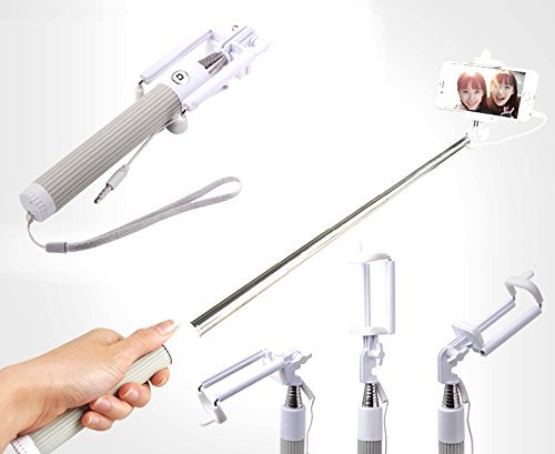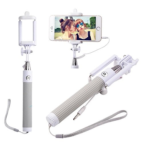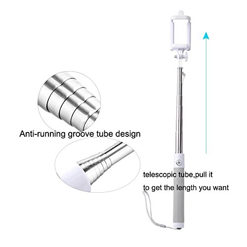 I-kool Selfie Stick, Quicksnap Pro 3-in-1 Self-portrait Monopod Extendable Wireless Bluetooth Selfie Stick with Built-in Bluetooth Remote Shutter with Adjustable Phone Holder for Iphone 6, Iphone 6 Plus, Iphone 5 5s 5c, Android and Motorrola (Grey W/Cable