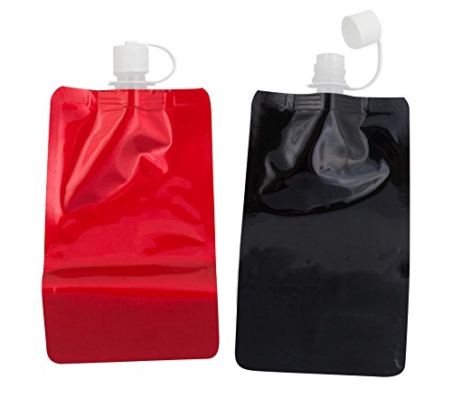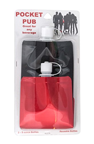 -. Feature : CONVENIENT: Compact, durable and foldable. / REUSABLE: Takes little space, and lightweight when empty. Easy to carry all night long. / GREAT FOR COLD BEVERAGES: 2 plastic flasks with attached white screw-on lids. / 2 FLASKS: One flask is red and one is black, makes it easy to tell which flask hold which drink. / LIGHTWEIGHT: Great replacement for bulky metal and plastic flasks.