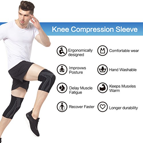 - HIGH PERFORMANCE: Compression fit knee sleeves are for both men and women and are extremely comfortable. They can be worn everyday to help you get the support you need.Helps reduce the recovery time of muscles and supports improved circulation and oxygenation of working muscles.