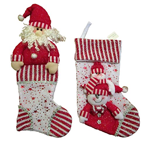 Christmas Red & White Santa & Snowman Matching Stockings (set of 2)