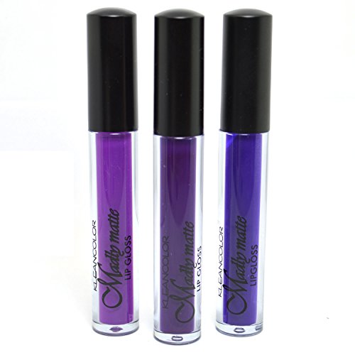 -. Title : KLEANCOLOR 3 SHADES MADLY MATTE VIOLET MYSTIC PURPLE LIP GLOSS LIQUID LG3SET14 + FREE EARRING