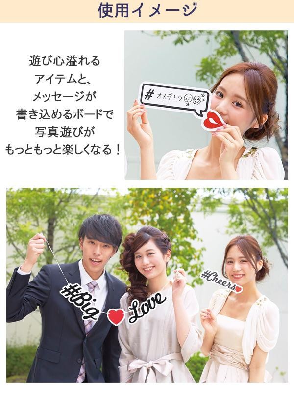 いつもは厳しい先輩も、恥ずかしがり屋なあの人も思わず笑顔で遊んじゃう!!待っている間にもゲストが楽しめる、そんなアイテムです!!メッセージと一緒に写真を撮れば、披露宴のエンディングや二次会の楽しい映像にも活用できるので、パーティー遊びの幅が広がります。 |