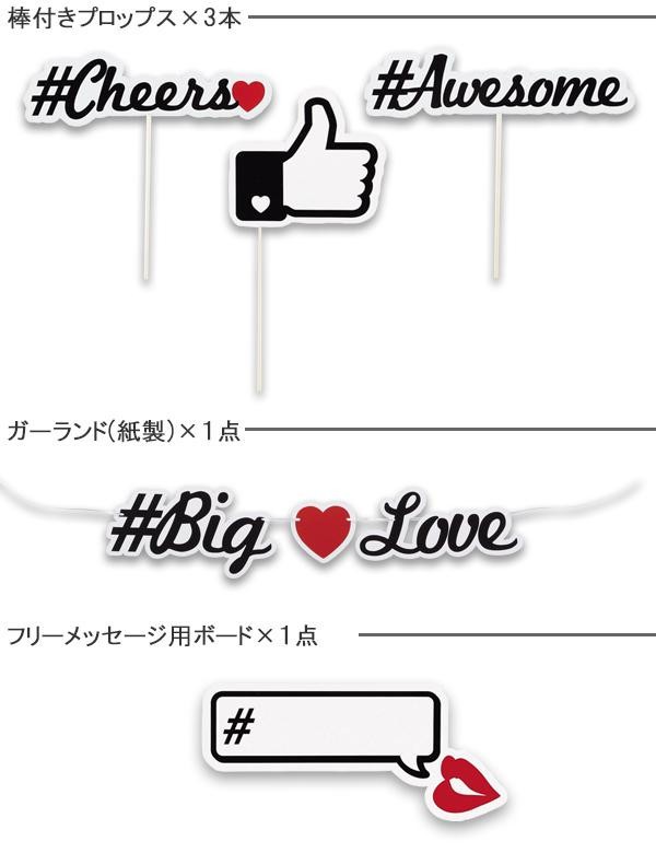 | セット内容 | フレーム×1組、棒付きプロップス×3本、ガーランド(紙製)×1点、フリーメッセージ用ボード×1点、イレイザー付きマーカー(黒)×1本 |