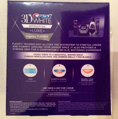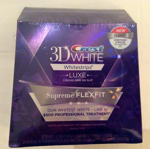 -. Binding : Health and Beauty -. Feature : Helps Whiten Teeth as well as a $500 Professional Teeth Whitening Treatment* / Exclusive FlexFit Technology Design Stretches & Molds to Custom Fit Your Unique Smile / The No Slip Grip Stays Put so You Can Talk & Drink Water While Whitening Teeth / The Strip Molds to the Shape of Your Teeth & Comes off Cleanly / Uses the Same Enamel-Safe Teeth Whitening Ingredients Dentists Use -. IsAdultProduct : 0 -. Label : PROCTER & GAMBLE CONSUMER -. Manufacturer : PROCTER & GAMBLE CONSUMER -. ProductGroup : Beauty -. ProductTypeName : HEALTH_PERSONAL_CARE -. Publisher : PROCTER & GAMBLE CONSUMER -. Studio : PROCTER & GAMBLE CONSUMER -. Title : Crest 3D White Luxe Whitestrips FlexFit-Teeth Whitening Kit 14 each (Pack Of 2)