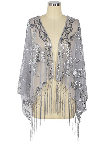 Brand: Kayamiya Women's 1920's clothing broke out of the prim and proper mold of Victorian ideals and into free spirited casual wear. In the roaring 20s, the clothing was glamorous and the women were elegant. Kayamiya focus on 20's dress includes fringe flapper dresses, flapper girl costumes,sequined flapper dress and beaded flapper dress. Kayamiya Women¡?s 1920s Scarf Sequin Deco Wedding Wrap Evening Shawl With Fringe Perfect match 1920s dress, for 20's themed party/prom/wedding occasion. 0 |
