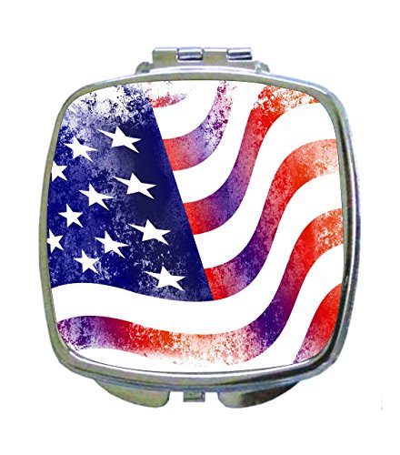 Grungy Waving American Flag Print - Compact Mirror in Silvertone - Square Shaped - Pocket Sized