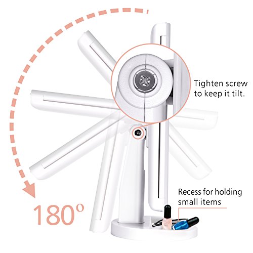 - 180 Degree Adjustable: This cosmetic mirror rotates vertically 180 degree for your ideal angle; The detachable base designed with a holding area perfect for small items like bobby pins, small hair clips, or earrings