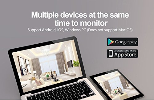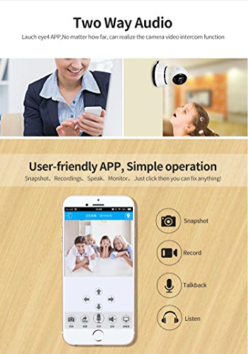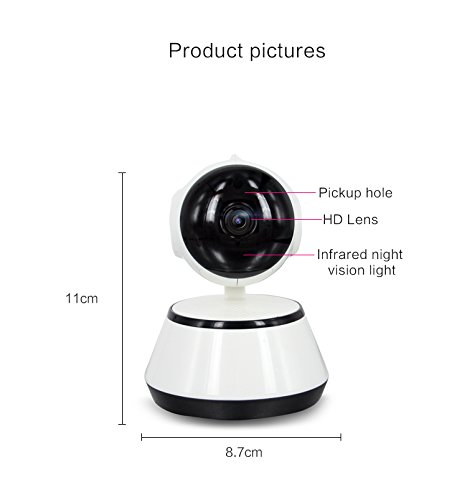 -. Feature : 【Quick and Easy Setup】: Download APP via scan QR code on App store or Google Play. Seamlessly HD video streaming and two-way audio via your smartphone(both Android and IOS).CMS for Computer client. / 【Two Way Audio】 Let you communicate with those in your home; keep your pets out of trouble and stay reassured your kids or elders are doing well / 【Remarkable Field of View】Remarkable Field of View: Remote super fluently Pan/Tilt nearly 355 degree viewing coverage, 1080P high resolution, two-way audio allows you talk and listen freely, adjust the volume at the app super easy / 【Motion Detect Alert】 Continuous day/night surveillance is accomplished with 11 powerful IR-LEDs for night vision up to 30ft. Motion detect sensibility can be adjusted yourself, when monitor is detected or alarm is triggered, instant email notification will be sent / 【 Wide-range In Application】Pet Monitoring, Business Monitoring, Security, Vacation Home Monitoring, Senior Monitoring, Remote Live Video Streaming via Phone, Tablet and PC.