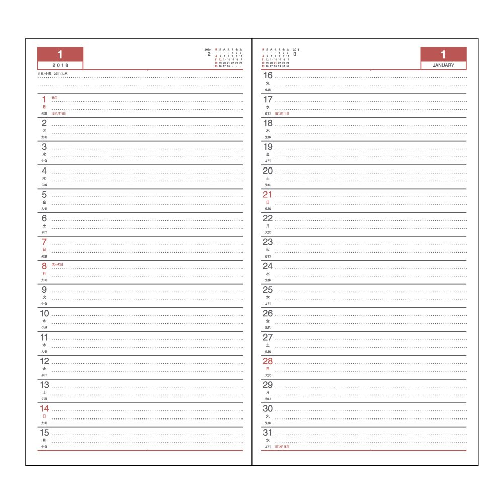 The monthly schedule is a simple horizontal rule type calendar, making continuous schedule easy to grasp.