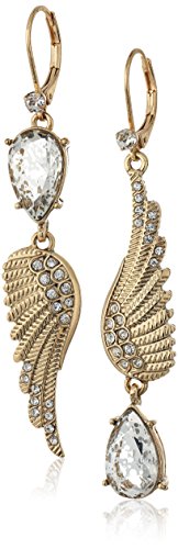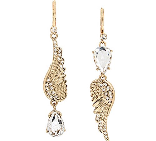 Fabulously detailed wings are matched with exciting patina crystals in these mismatch earrings fashioned by Betsey Johnson in gold-tone mixed metal. Approximate drop: 2-1/2".Feature