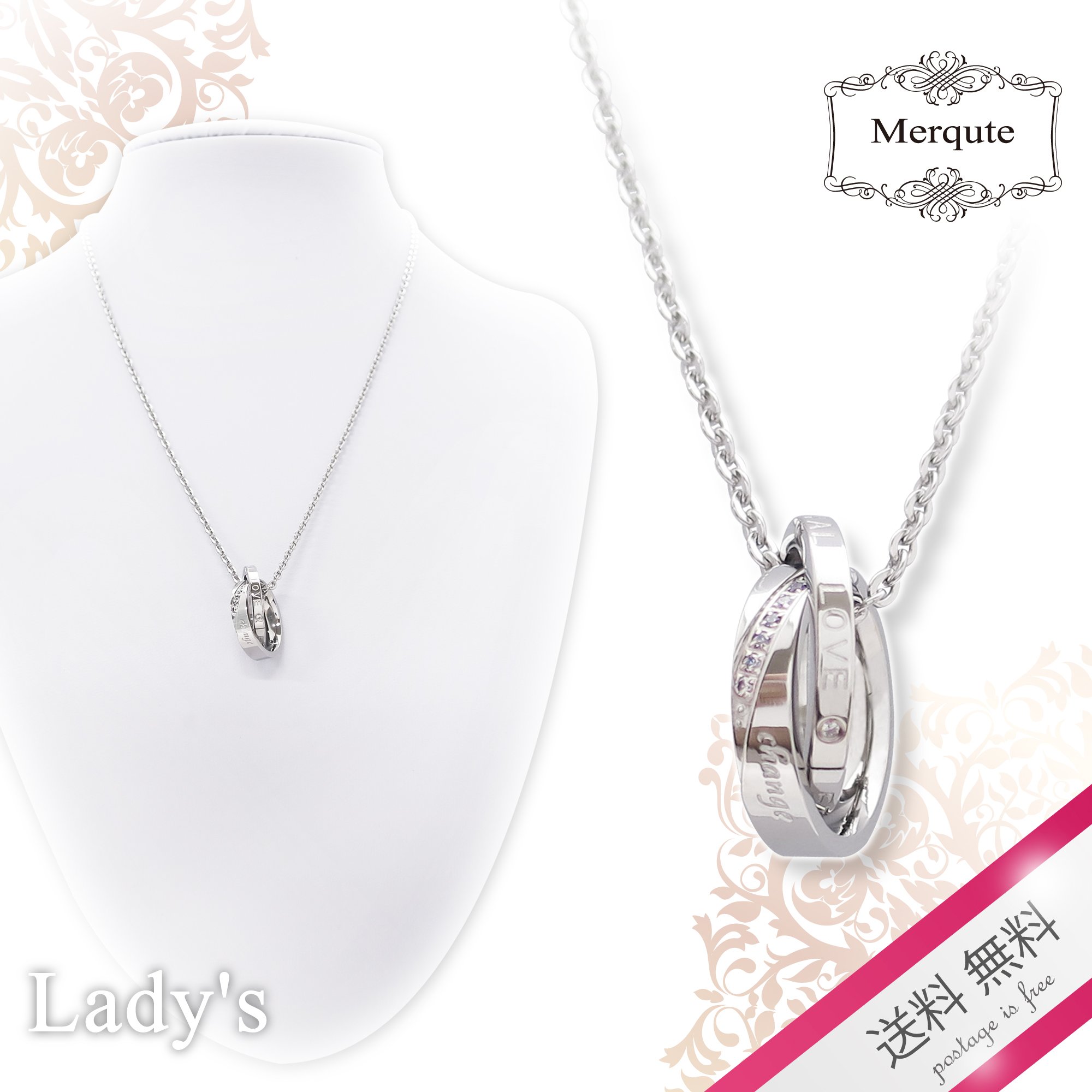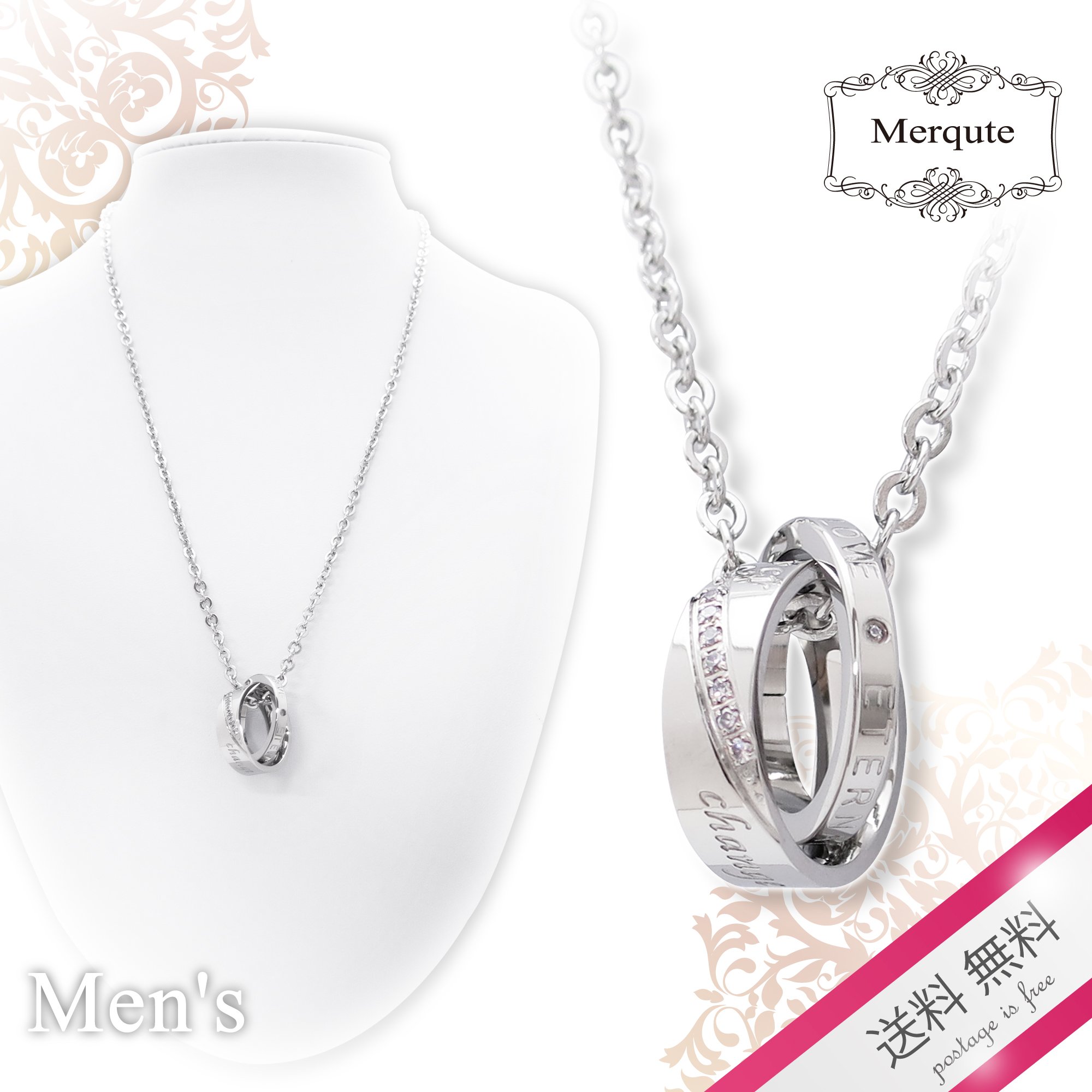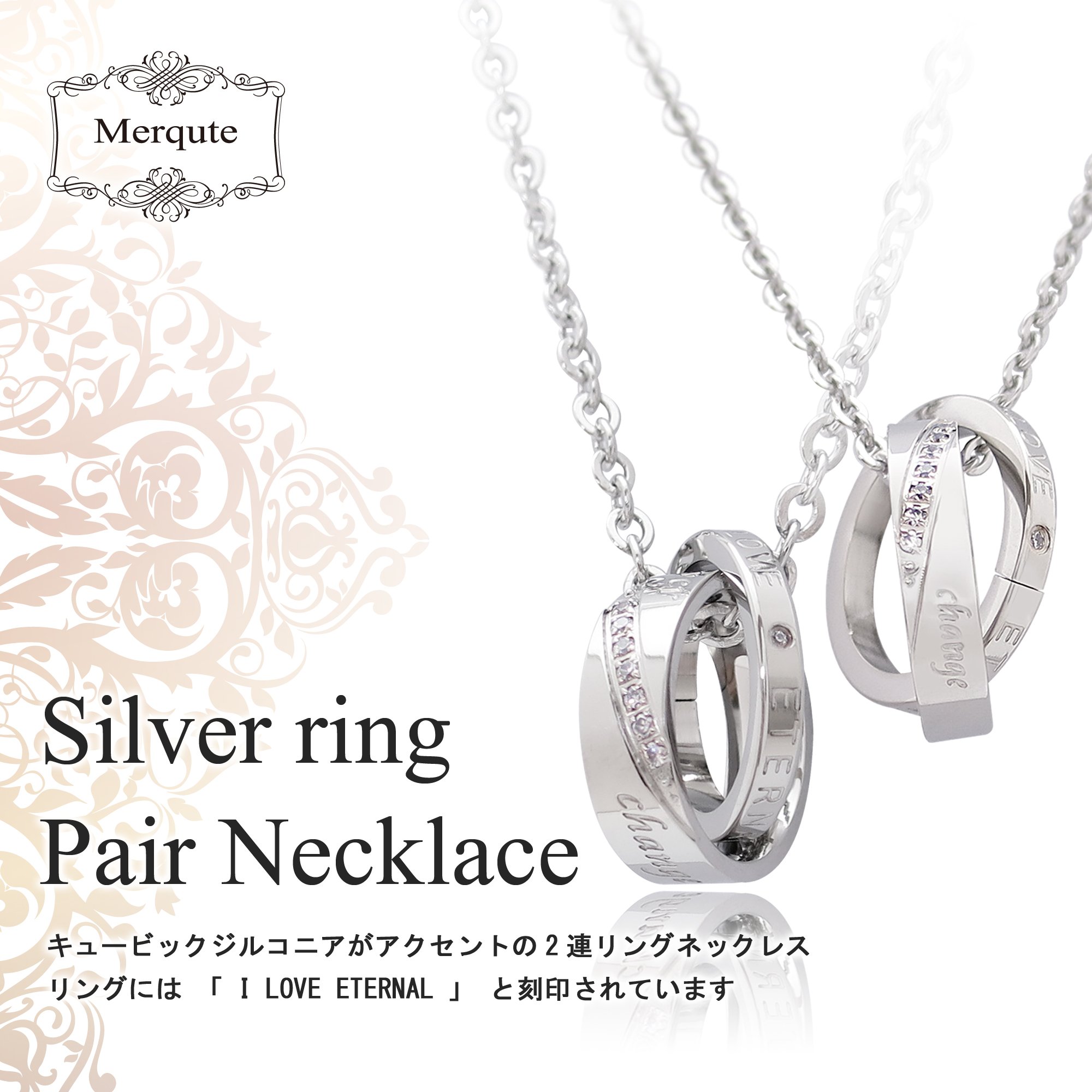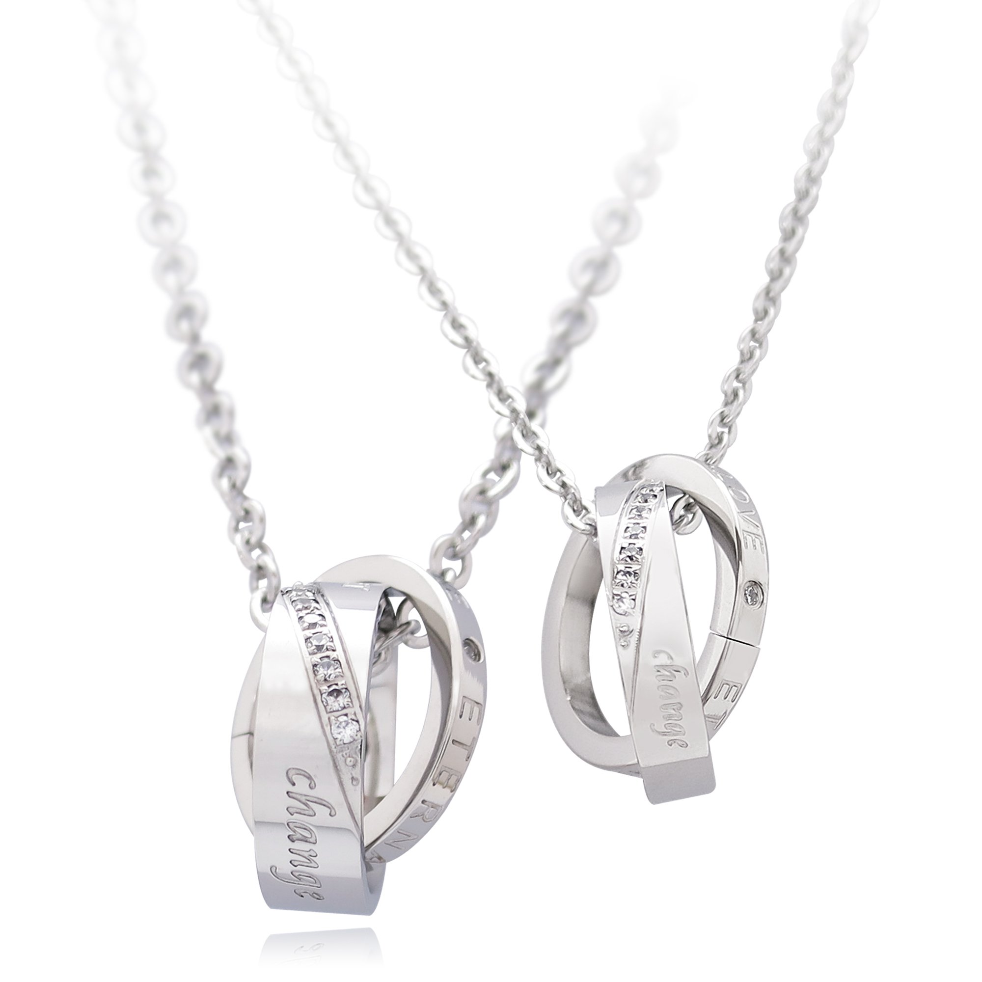Cubic zirconia in the middle of the ring is an accent two-ring necklace.