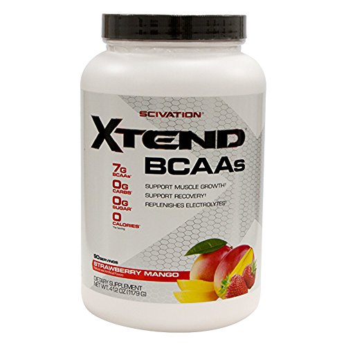 ReleaseDate : 2017-04-01 Studio : Scivation Publisher : Scivation Binding : Health and Beauty Product Description Scivation, Xtend BCAAs Strawberry Mango 41.2ounces. Scivation Xtend BCAA contains 7 g of BCAAs - in the nature-designed and widely-researched 2:1:1 ratio - along with Glutamine and Citrulline Malate. Plus, with a proprietary blend of hydration-promotion electrolytes, Scivation Xtend is the delicious, refreshing, sugar-free way to help anyone grind through a grueling gym session. 0