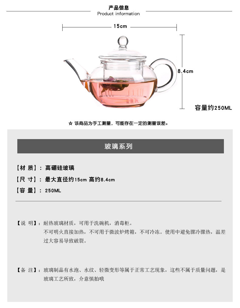 耐热玻璃茶壶小号功夫红茶泡茶杯煮泡花草茶冲茶器家用普洱茶具