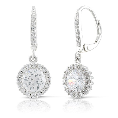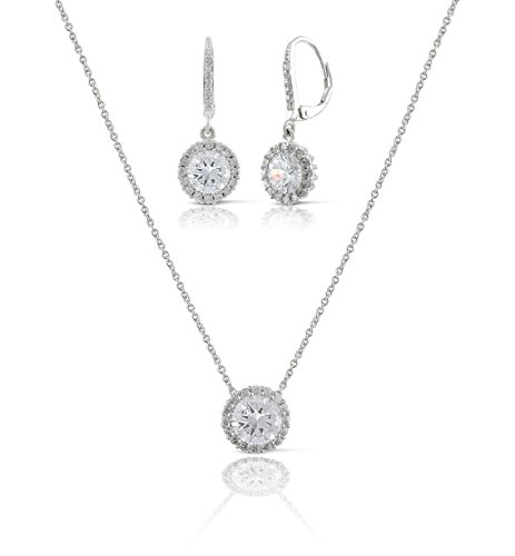 Necklace Length: 16"+2" Extender; Earrings Length: 1.25 inches; Cubic Zirconia Diameter: 0.4 inch. JanKuo Jewelry Rhodium Plated Round Halo Cubic Zirconia Necklace Earrings Jewelry Set, 16"+2" Extender in Gift Box. COLOR MAY VARY FOR THE FREE GIFT BOX.Feature