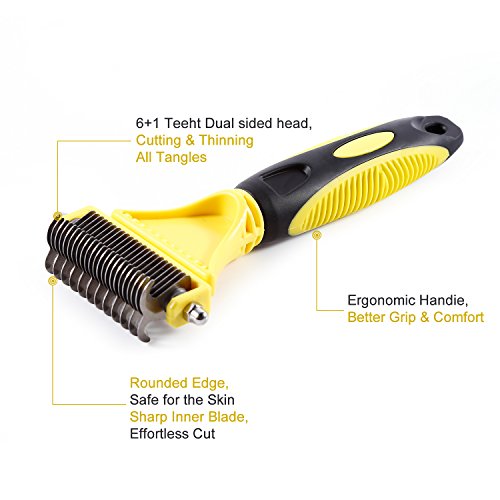 APPLICATION:These de-shedding brush / undercoat rake are high quality making this the best de-matting comb for dogs, cats, and all furry friends.