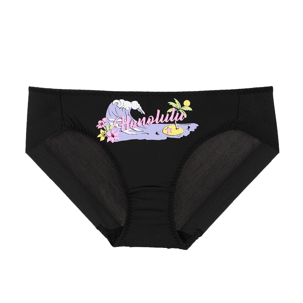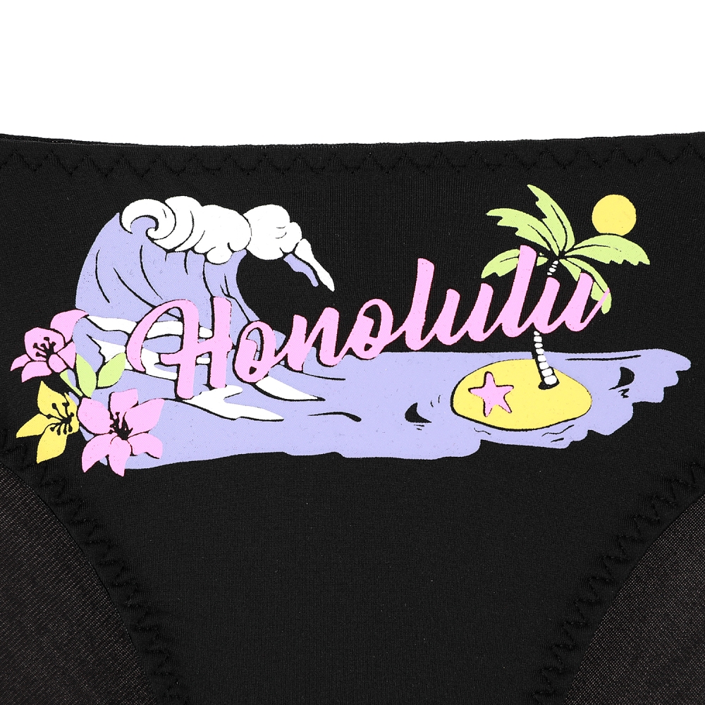 컬러풀한 거품 파도 그래픽을 원포인트로 준 블랙컬러 Hem Line 팬티제품 입니다.