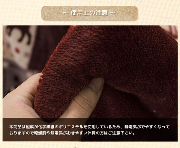 注意点:組成が化学繊維のポリエステルを多く占めているため静電気が発生しやすい仕様となっております。