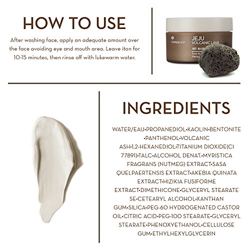 THE FACE SHOP carries nature's own values, representing natural beauty and vitality. THE FACE SHOP's products come from nature and delivers values of its roots. JEJU VOLCANIC SOIL's porous component helps absorb sebum and cleanse deep inside pores, reducing blackheads and minimizing pores. This facial mask is like a dead sea mud mask (clay) or charcoal mud mask (cleanser) and sucks out impurities and dirt.