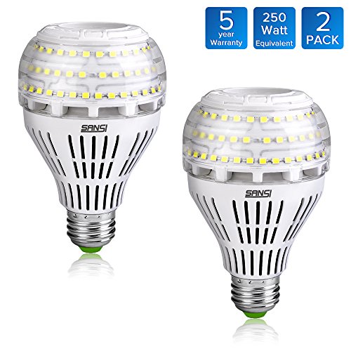27W (250 Watt Equivalent) A21 Omni-directional Ceramic LED Light Bulbs, 3500 Lumens, 5000K Daylight, E26 Medium Screw Base Floodlight Bulb, Home Lighting, 5-year Warranty, Non-dimmable, SANSI (2 PACK)