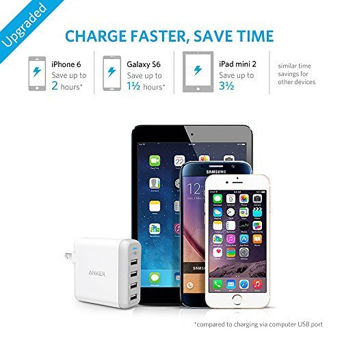 Anker 40W 4-Port USB Wall Charger PowerPort 4, Multi-Port USB Charger with Foldable Plug for iPhone 6s / 6 / 6 Plus, iPad Air 2, Samsung Galaxy S6, Note 5 and More