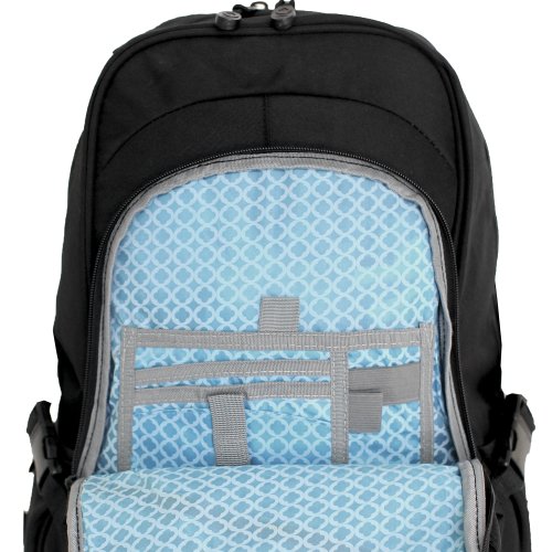 -. Binding : Apparel -. Brand : J World New York -. Department : unisex-adult -. Feature : S-shaped shoulder straps / Laptop sleeve / Air mesh cushioned and PU back / Front pocket organizer / Utility pockets and sternum strap -. Label : J World New York -. Manufacturer : J World New York -. PackageQuantity : 1 -. ProductGroup : Apparel -. ProductTypeName : LAGE -. Publisher : J World New York -. Size : One Size -. Studio : J World New York -. Title : J World New York Velox Laptop Backpack