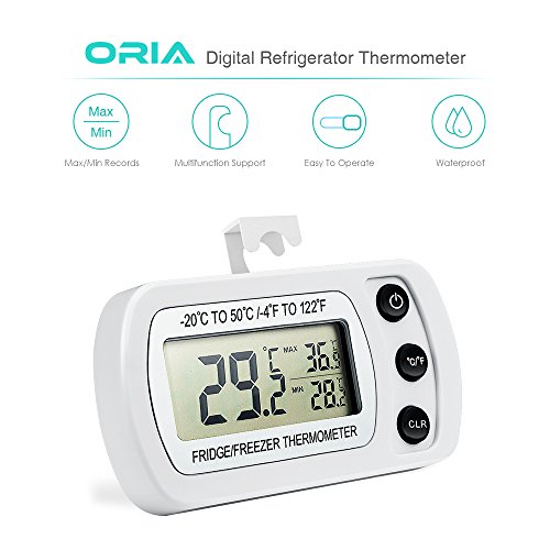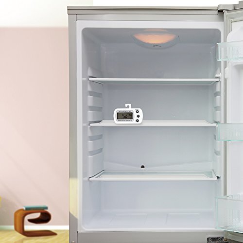 Description: Oria® friendly design digital freezer thermometer help avoid food spoilage with a thermometer in your refrigerator and freezer. Max/Min temperature value display on LCD screen; stand for shelf or hang with hook. How to replace the battery: Replace the battery when the reading becomes erratic or the display clarity fades. Open the screw and the ABS shell, and replace with a new CR2032 battery which you can easily get from store. Notes: * Once you reboot the thermometer, the max/min temperature will be reset too. * Please reboot it if you find inaccurate info. Specification: measuring temperature range: -20°C to 50°C/-4°F to 122°F Accuracy: ±1°C/±2°F resolution:0.1°C/0.2°F waterproof structure,level IPX3 operating voltage:3V,CR2032 battery,1PCS Dimensions:8.7 X 1.2 X 4.5 cm/3.4 x 0.5 x 1.8 inch Weight: 45.4g Package included: 1 X user manual 1 X Digital Refrigerator Thermometer(battery included) 0 |