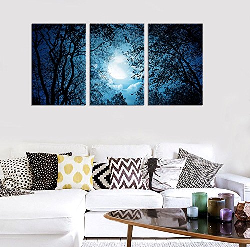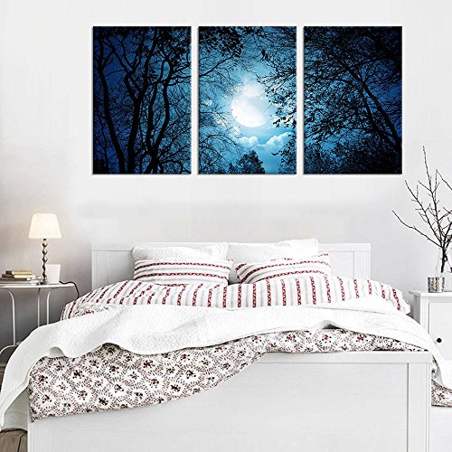 Canvas Wall Art Decor Moon Night Scene Framed and Ready to HangFeatures:
