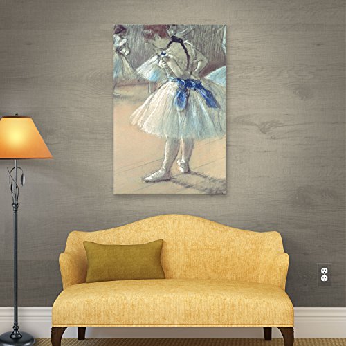 Edgar Degas 'After the Bath, Woman Drying her Neck' gallery-wrapped canvas is a high-quality canvas print in the Degas' trademark Impressionist style, depicting the figural curvature of his subject's back. An elegant, evocative addition to your home or office. Known to have influenced such great artists as Picasso and Matisse, Edgar Degas was an artist known as the "painter of dancers" who also worked at perfecting his skills in photography, lithography, oil paintings, pastels and etching. His innovations set the standards for Impressionists. He was especially intrigued by Parisian life, namely females, whether entertainment specialists, cabaret performers, or ballet dancers. When Edgar Degas returned to Paris, he found that he was tired of displaying his work in the Salon and joined more closely with a group of impressionists of the time. However, his paintings reveal an almost innate urge not to conform completely to all the whims of the day. His paintings of Absinthe and Dancers Practicing at the Bar are of particular note because of their real-world appeal. By his later years, he was dabbling in pastels, glazes and worked sculpting bronze.Feature