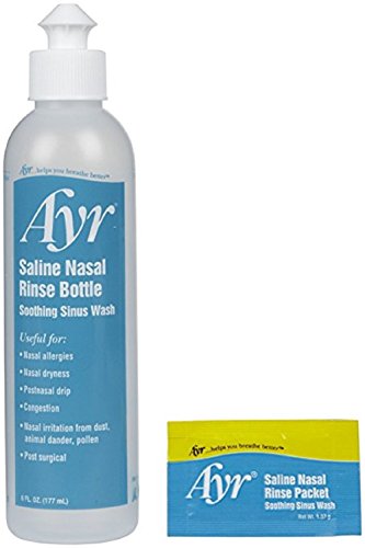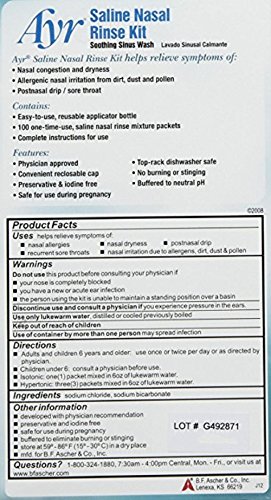 Studio : Ayr Publisher : Ayr Binding : Health and Beauty Product Description Saline Nasal Rinse Kit from Ayr is an all-in-one, all-natural nasal wash system. This multi-use kit provides soothing comfort both for adults and children 6 and up and allows for both isotonic and hyper-tonic use. 0