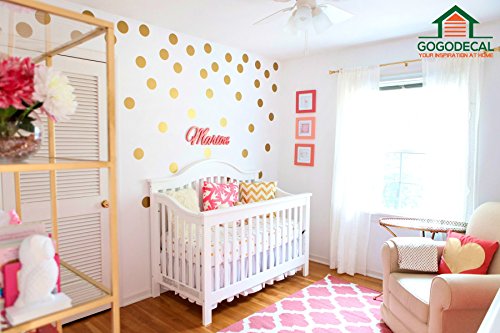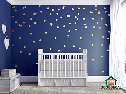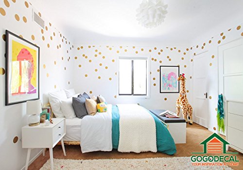 -. Feature : GOLD DOT WALL DECALS: Easy to apply, decals better than wallpaper, painting & art murals. / LARGE GOLD DOT: 1.6" Size with Eco-friendly, non-toxic decals - safe for your baby. / GOLD DOT HOME DECOR: Add colors without paint. Bring so much love, life, memory and happiness, get many compliments / SAFE: Anti Glare (matte) finish to give the quality look of real metallic paint on your walls unlike cheap glossy alternatives. / Safe on painted walls and drywall so you don't need to worry about damage. Works great for decorating apartments and nurseries.